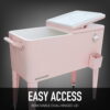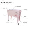 Introducing the Permasteel 80-Qt Classic Outdoor Steel Patio Cooler on Wheels. This vintage-style cooler cart provides a large storage capacity of 80 quarts and fits up to 110 cans (12-oz) or 50 bottles (16.9-oz) so you can store more than just a few drinks for your next outdoor party or gathering. Its double-sided handles make it easy to move around, and with its four casters (2 locking) you can keep the outdoor cooler secure while you transport it and when it’s time to get the party started, flip off the fully removable lid! The retro cooler also comes with a bottle opener and cap catcher so that no one has to worry about being without their favorite beverages, as well as a drain plug that makes clean-up quick and easy. There are nine colors to choose from; black, blue, mint and lime green, orange, red, turquoise, and white – so no matter what your backyard decor looks like you’ll be able to find something to match. And because this patio cooler is constructed from steel, its powder-coated finish prevents rust and fading – so it’ll look great for years! With its insulation capabilities, you can ensure that all your beverages stay cold for up to 36 hours – perfect for hosting events, celebrations, barbeques or any get-together! So why wait? Get your Permasteel Outdoor Steel Patio Cooler today!