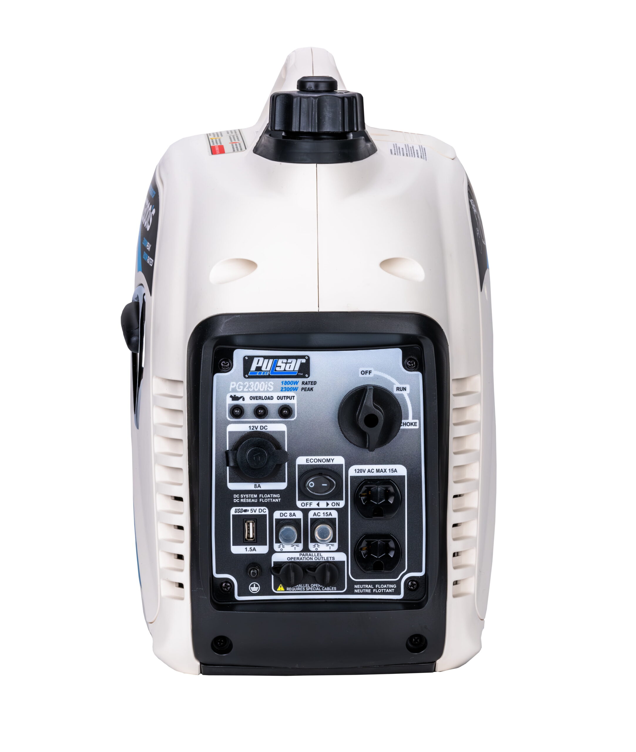 Pulsar’s PG2300iS Portable Inverter Gasoline Generator is a prime choice for clean power and optimal portability. Its single cylinder, 4-stroke, OHV engine produces 2,300 peak watts/1,800 running watts of power and generates just 59 dB of sound, making it virtually silent from just 10 feet away. Parallel capability allows you to run two PG2300iS generators in tandem with the use of an adapter to effectively increase power output without the hassle that comes along with having a much larger unit. The handy ?suitcase? design is both durable and compact and weighs only 47 lbs, giving you the freedom to take the PG2300iS anywhere with ease.