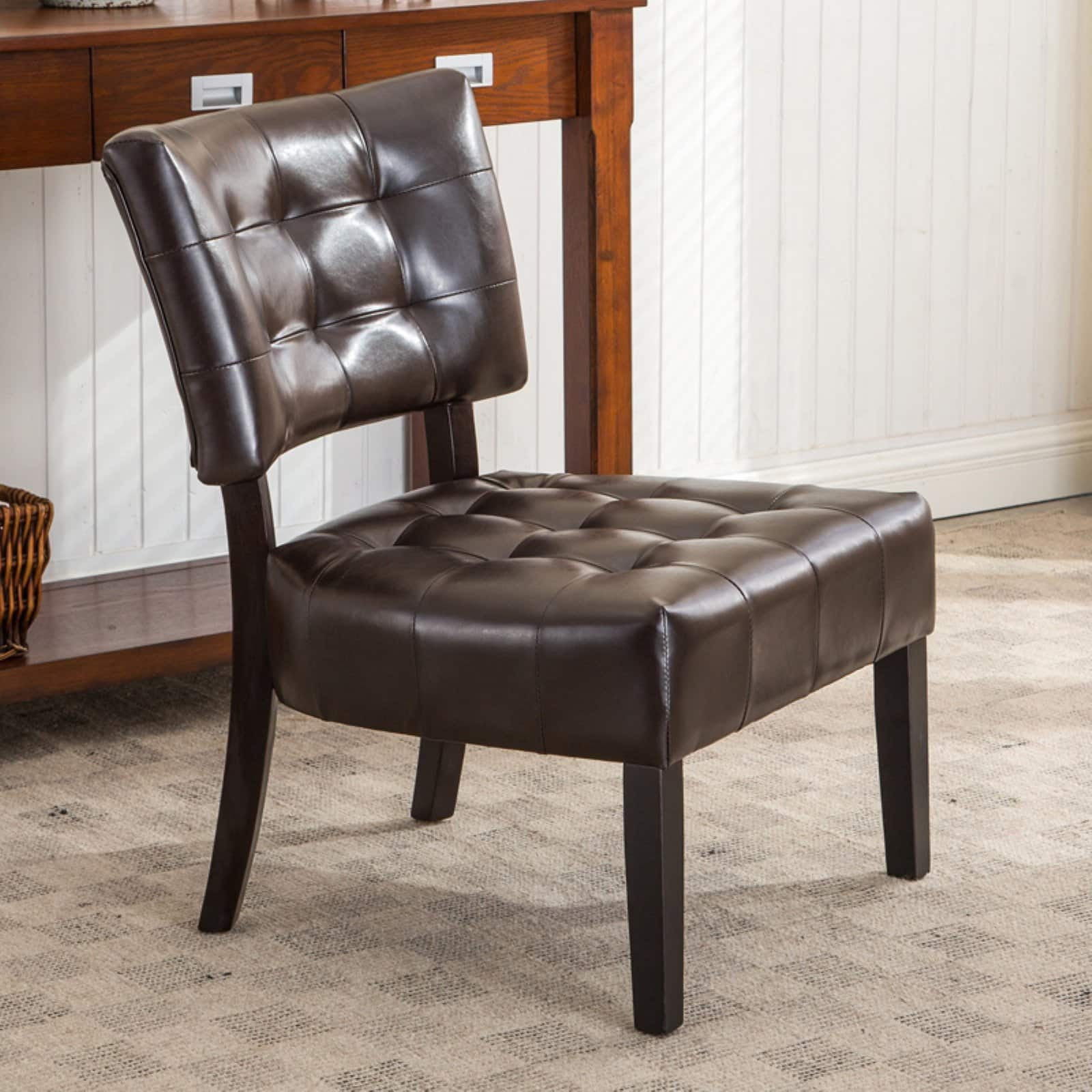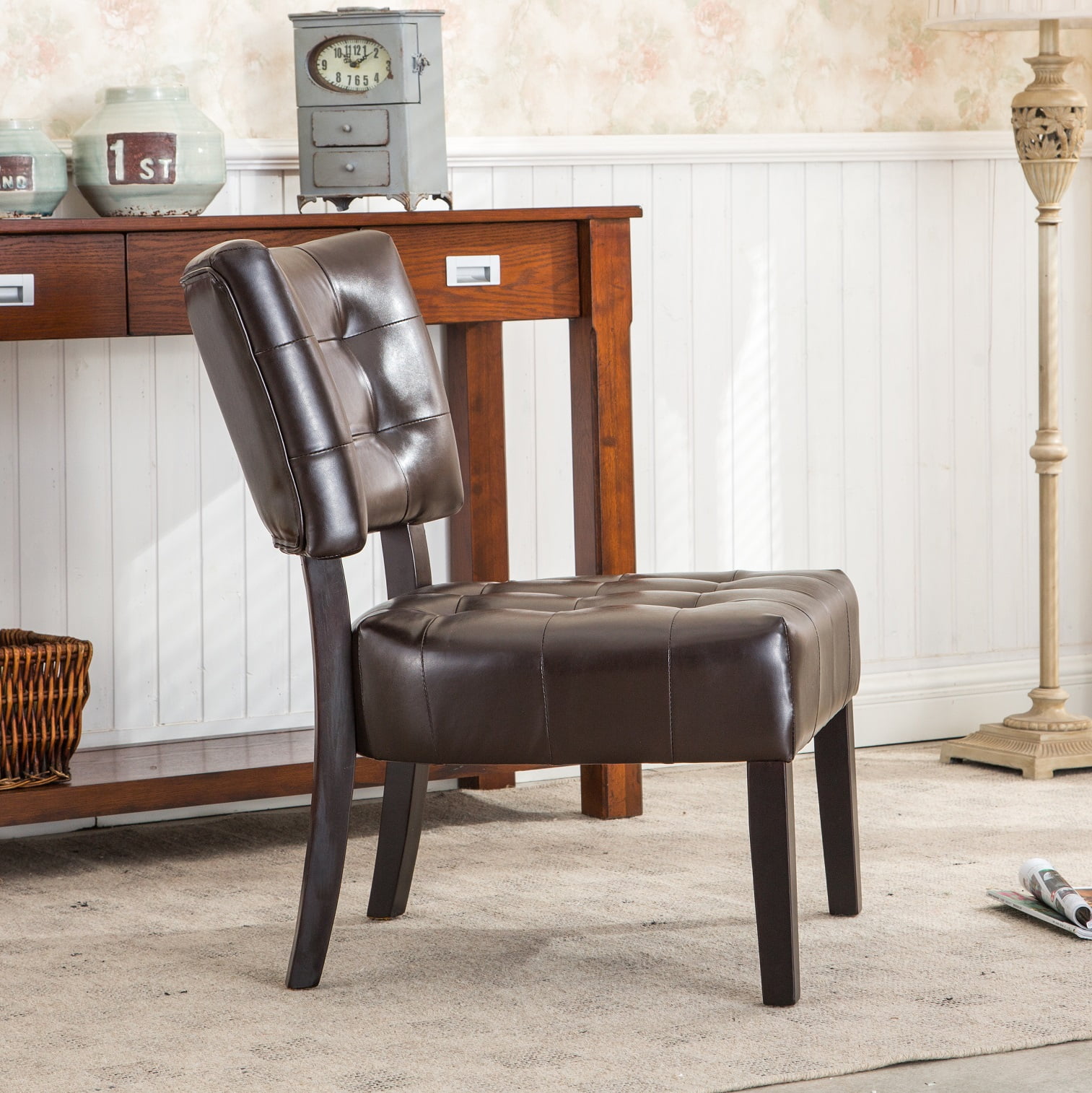 The Movile Faux Leather Tufted Oversize Accent Chair makes a style and comfort statement. The chair is upholstered in plush faux leather. Thick foam cushioning makes you feel cradled as you lounge, while the tufting detail adds a tailored look. This luxurious tufted faux leather chair features decorative line tufting on the seat’s back. Solid wood legs blend perfectly with the simple design.