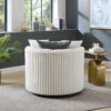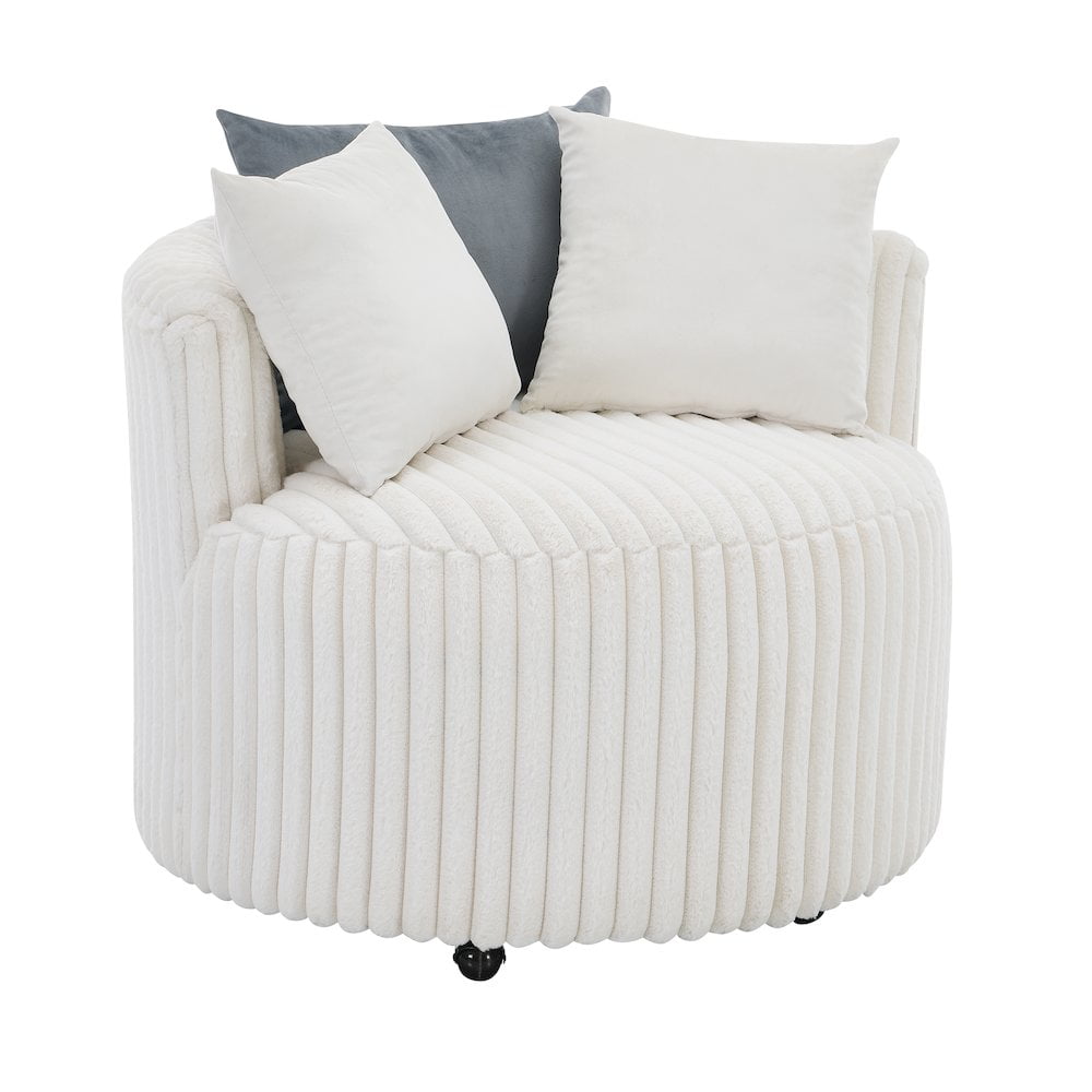 Malna Wide Wale Corduroy Upholstered Barrel Accent Chair with Wheels, Off-white