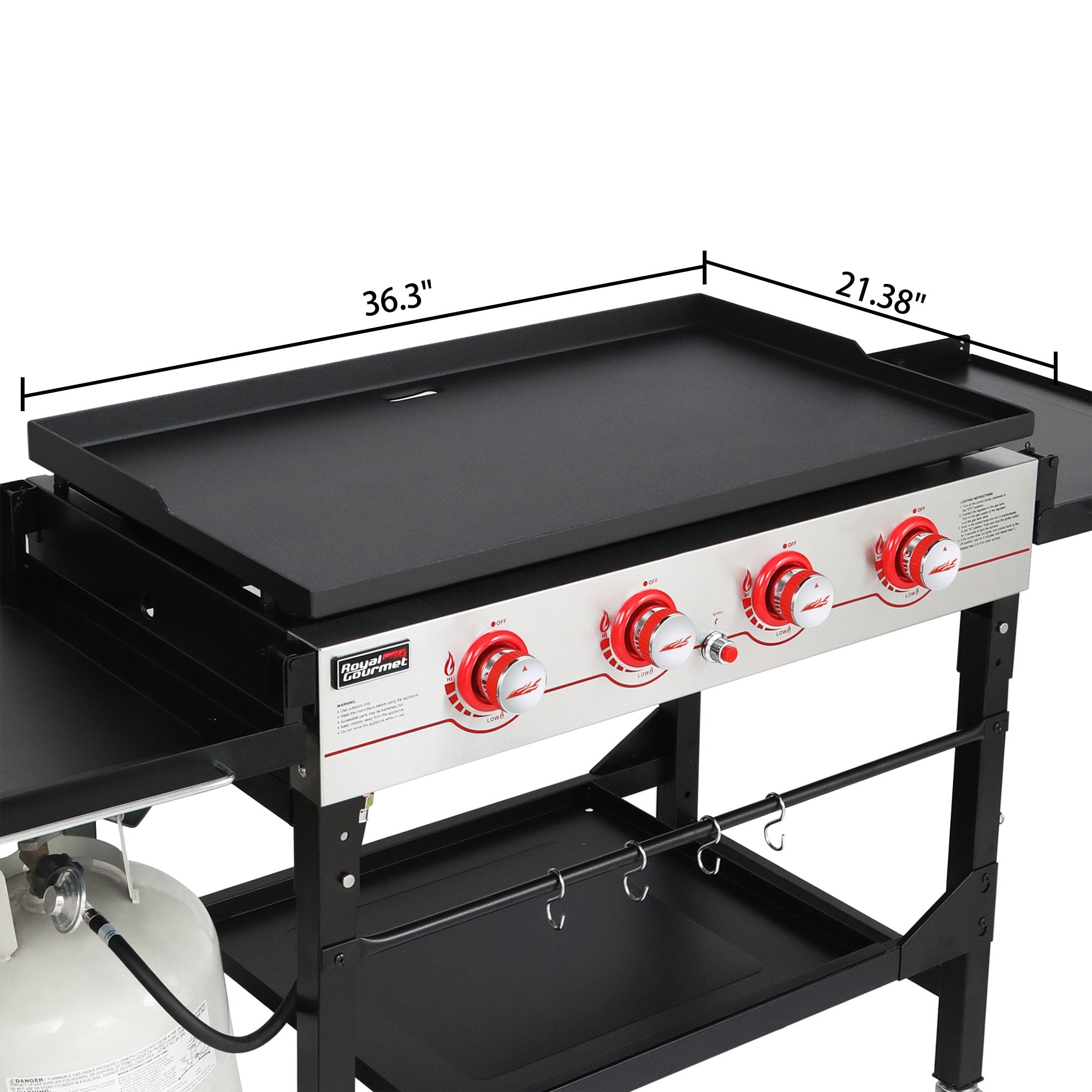 Come along and show you the best portable prep and cook with Royal Gourmet® GB4000F 36-Inch Flat Top Gas Griddle while you are on the road. Great importance and attentions must be attached to our cutting-edge design of collapsible side shelves and legs for indeed outdoor cooking convenience. Time for another pickup truck cookout, the sun is shining and the weather is getting warm. Invite a group of friends and get surrounded by the center of your griddle. Explore the infinite possibilities with Royal Gourmet®.