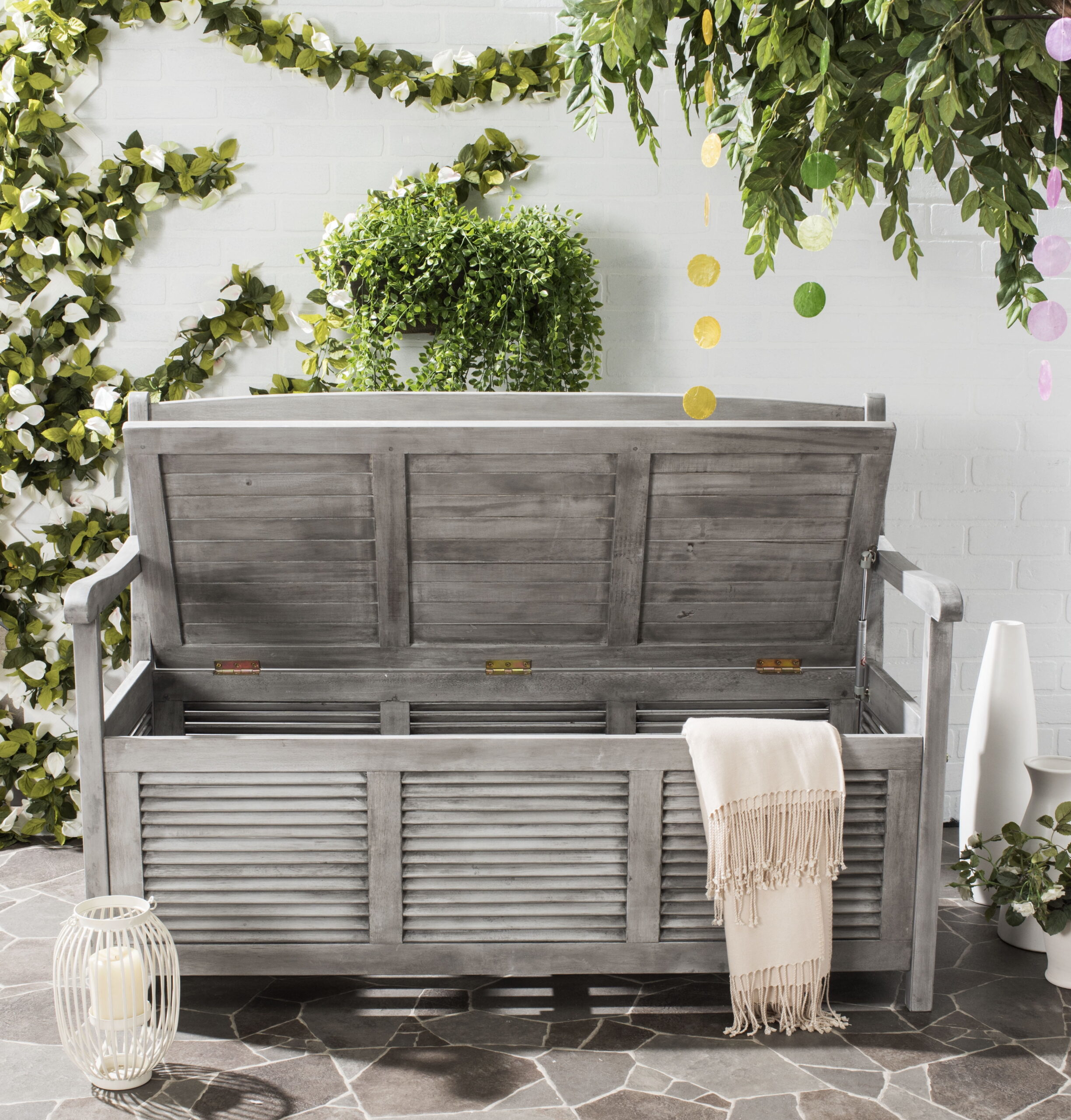 Inventive and beautiful, the Brisbane outdoor storage bench solves the age-old dilemma of where to store pool gear or outdoor cushions, while providing seating for two. Crafted of easy care acacia wood in grey, this piece promises style and function.