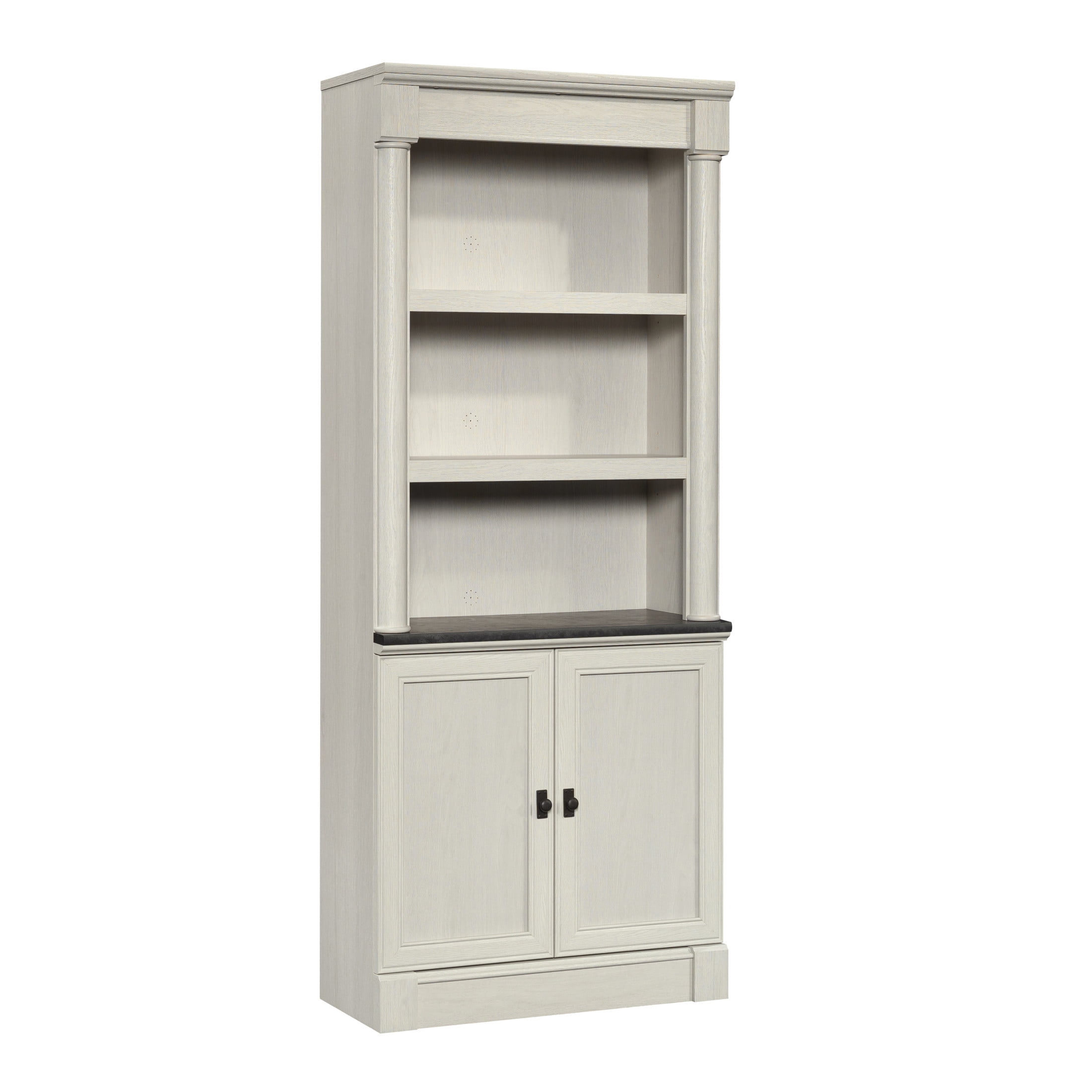No home office is complete without convenient storage and organization. Tidy up your workspace without having to sacrifice on style with this library bookcase with doors from the Palladia collection. This library bookcase with doors features spacious shelving that provide you with the space to store and display various items such as your collection of books, decorative plants, stacks of magazines, and photos of your family and friends. Three of the shelves are adjustable (with one behind the doors), allowing them to move to different heights to create flexible storage options for items of all shapes and sizes. This library bookcase also features hidden storage behind two framed panel doors for office clutter and extra supplies, or other household items. The enclosed back panel includes cord access so you can keep all your wires neat and out of sight. Finished in Glacier Oak with a dark Rosso Slate finish accent, this 5-shelf bookcase gives your home office just the organization it needs.