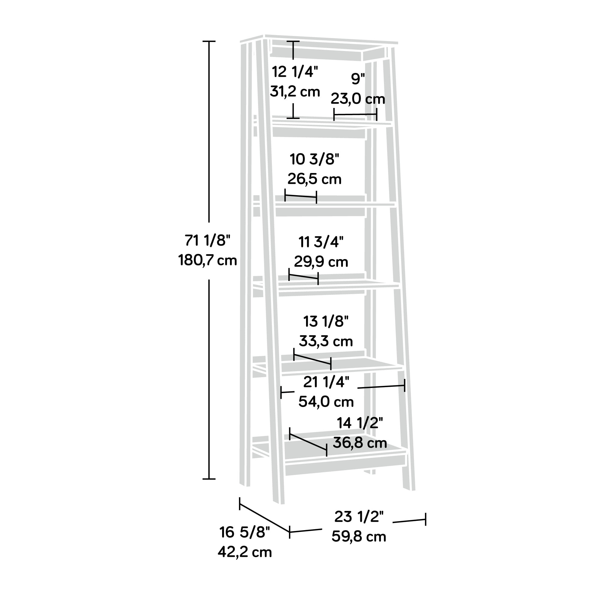 Bring style and storage to your home with this 5-shelf bookcase from the Trestle® collection. Find the perfect place for your awards, books, home décor, organizing bins, and more on the five open storage shelves of this tall bookcase. This living room bookcase is finished on all sides for versatile placement, meaning it will look polished and complete from any angle. Use this tall bookshelf in the bedroom, office, living room, den, or hallway. It is adaptable enough to fit anywhere you need additional open storage space. Finished on all sides in Jamocha Wood®, this versatile ladder bookcase makes a great addition to any room in your home. We hope you like what you see. Sauder designers travel the world and bring back the best and latest in style, finish, and color trends. This inspiring world travel is evident in the cutting edge and innovative furniture solutions we offer to you!