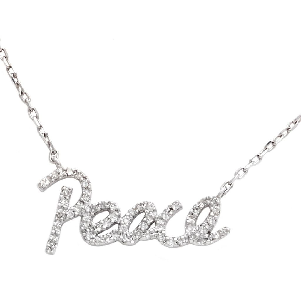 Sterling Silver Peace Sign Single Micro Pave Diamond Necklace (Silver Diamond Necklace “peace”)