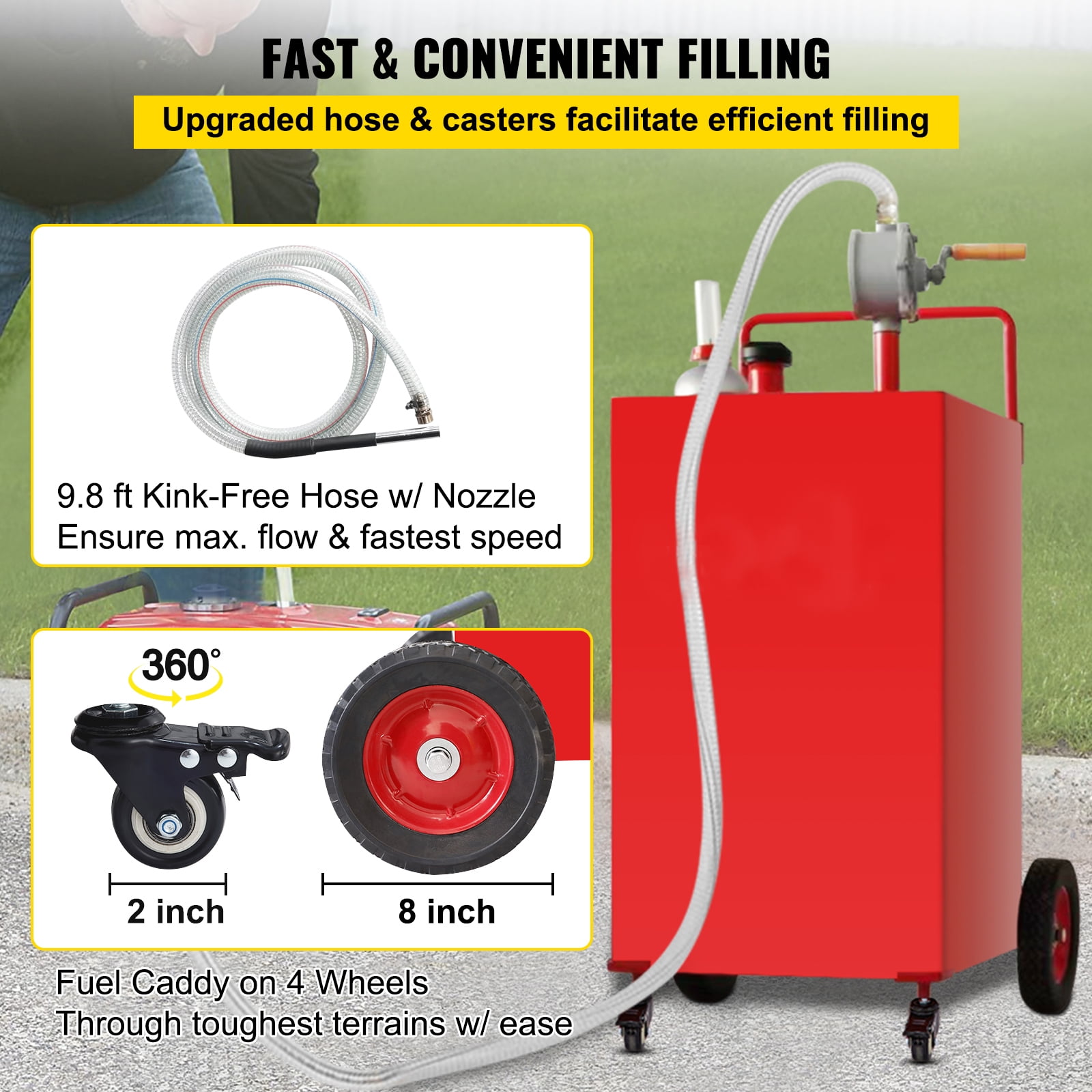 9.8 FT automotive grade rubber hose facilitates efficient and safe refueling. Heavy-duty nozzles support fast fuel delivery. Just open the lid and let it flow. You can quickly fill up your tank in just a few minutes.