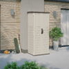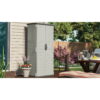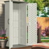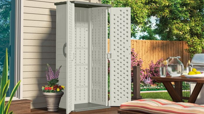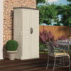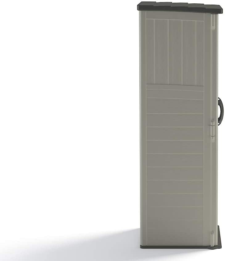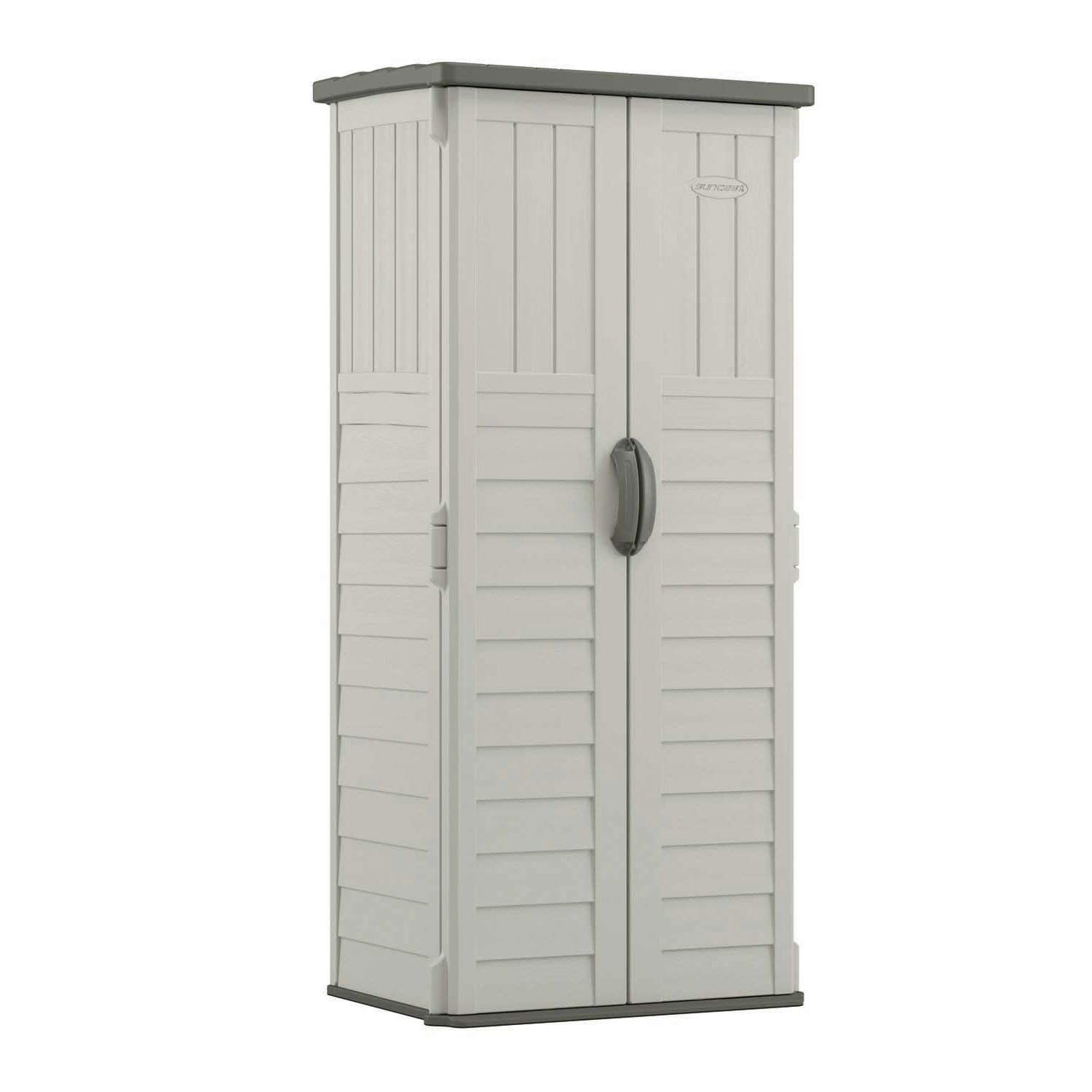 Bring handsome style and functionality to your yard or garden with the Suncast 22-cu. ft. Storage Shed. It’s made of multi-wall resin with a light taupe finish that allows for year-round use and easy maintenance. The Suncast shed gives you extra space with protection from the elements in a convenient vertical design. Place in on your deck, patio, alongside your home, or nestled up against the backyard fence. It’s ideal for storing garden supplies, pool equipment, patio cushions and accessories, sporting gear, shovels, rakes, and much more. The customizable interior supports up to four additional shelves (not included) for more organizational opportunities. This outdoor storage shed has sturdy, pad-lockable doors that provide superior strength and security for your items.