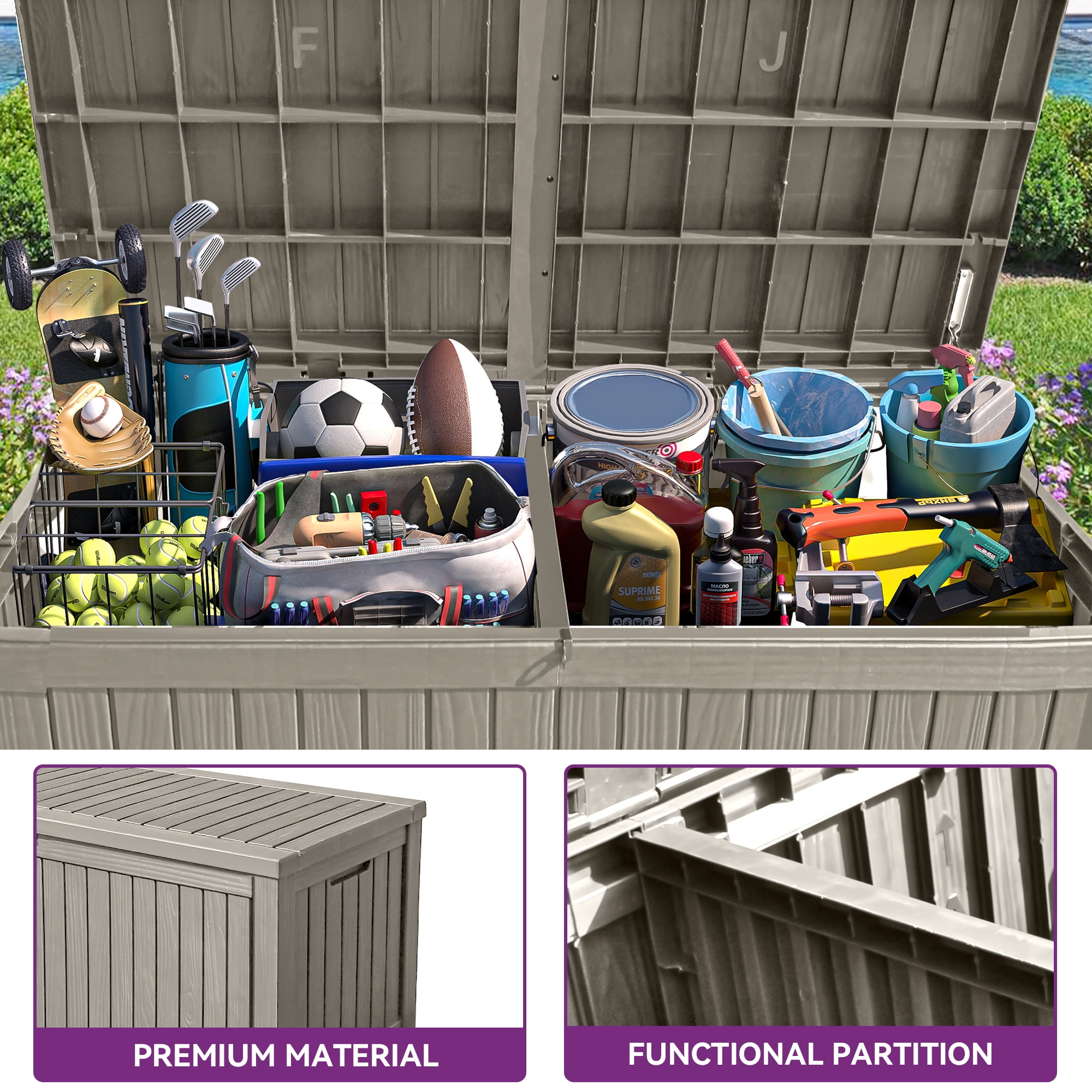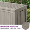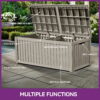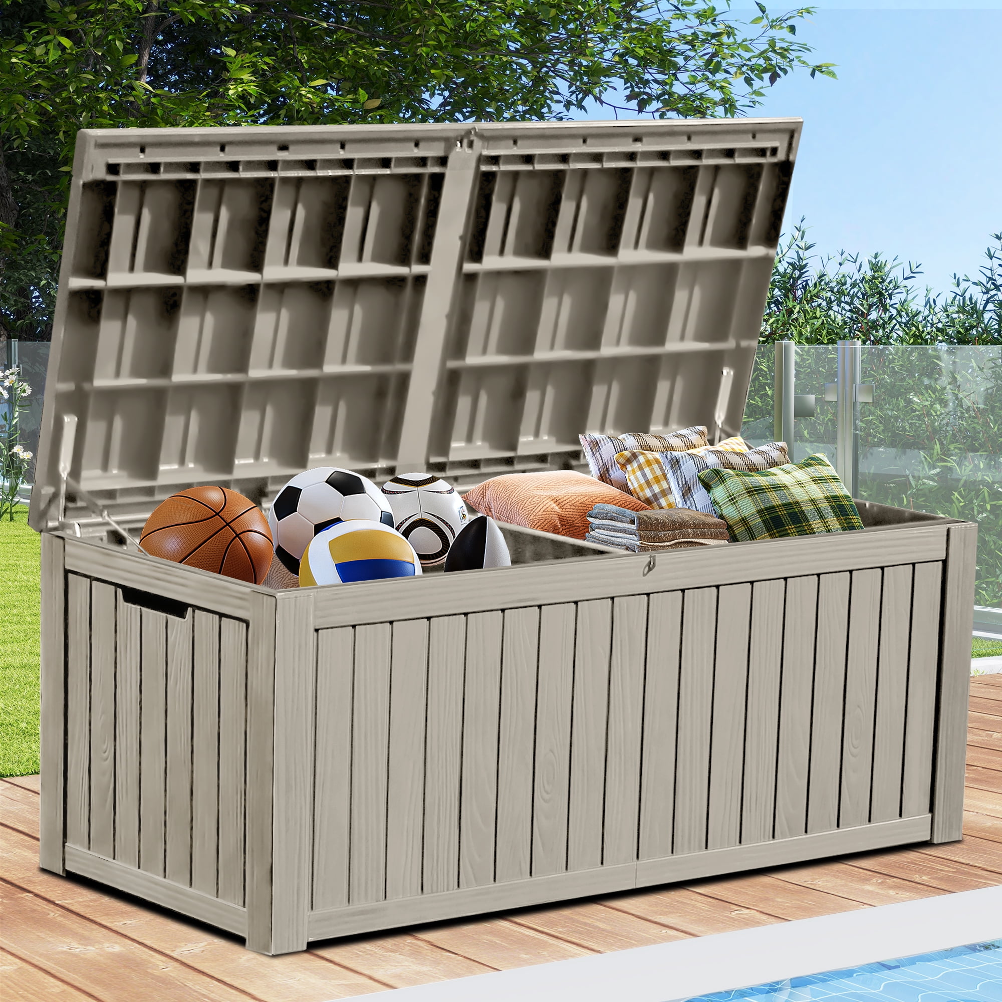 The Uforic 150-Gallon Resin Deck Box is the perfect solution for outdoor storage. With a built-in divider, it helps keep your items organized while providing ample space for cushions, toys, and tools. Its waterproof and lockable design ensures your items stay safe. The box doubles as a table or stool, blending seamlessly into any outdoor space. Assembly is easy with basic tools, and its durable construction ensures long-lasting use. The dimensions are 61″L x 25.4″W x 28.4″H, providing generous storage capacity.