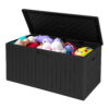 With a spacious 180-gallon (766L) capacity and a dual-compartment design, it enables organized storage for tools, cushions, and bulky gear. Eco-friendly and low-maintenance, its 100% recyclable materials and waterproof, fade-resistant finish align with sustainability goals. The sleek modern design, lockable lid, and collapsible/modular options blend seamlessly into any outdoor space, offering versatile utility for homes, commercial areas, or mobile storage needs.( High Light: Double-Layer Structure Versatile Design Large 180-Gallon Capacity Easy Setup Product information: Brand : Uforic Color : Black Material : Resin Special Feature : Weathertight Product Dimensions : 55.3″L x 28.3″W x 33.5″H Closure Type : Latch Item Weight : 29.75 Pounds(NOTE: This deck box features a stylish two-tone color design. The Grayish-Black back and right panels may appear Bluish-Gray under sunlight, while the other panels are Black )