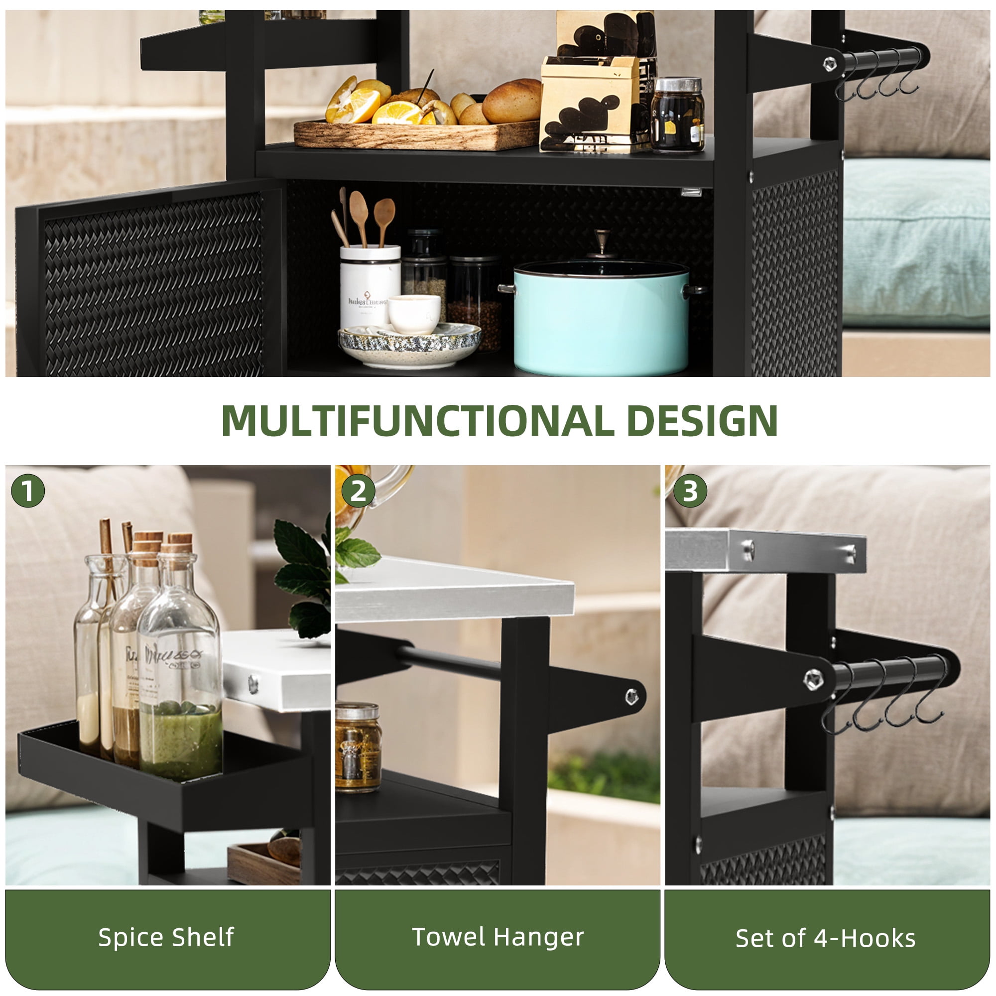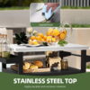 This outdoor grill cart is ideal for your patio, deck, or outdoor areas, making your cookouts smoother and more fun. With a rust-resistant stainless steel top, cleanup after grilling is a breeze, you’ll be back to enjoying your time in no time. Glide it around effortlessly with the 360° casters, and lock it in place when you’re ready to serve.  It handles up to 220 lbs on the top, making it tough enough for all your grilling needs. Set it up quickly and get grilling without any hassle.