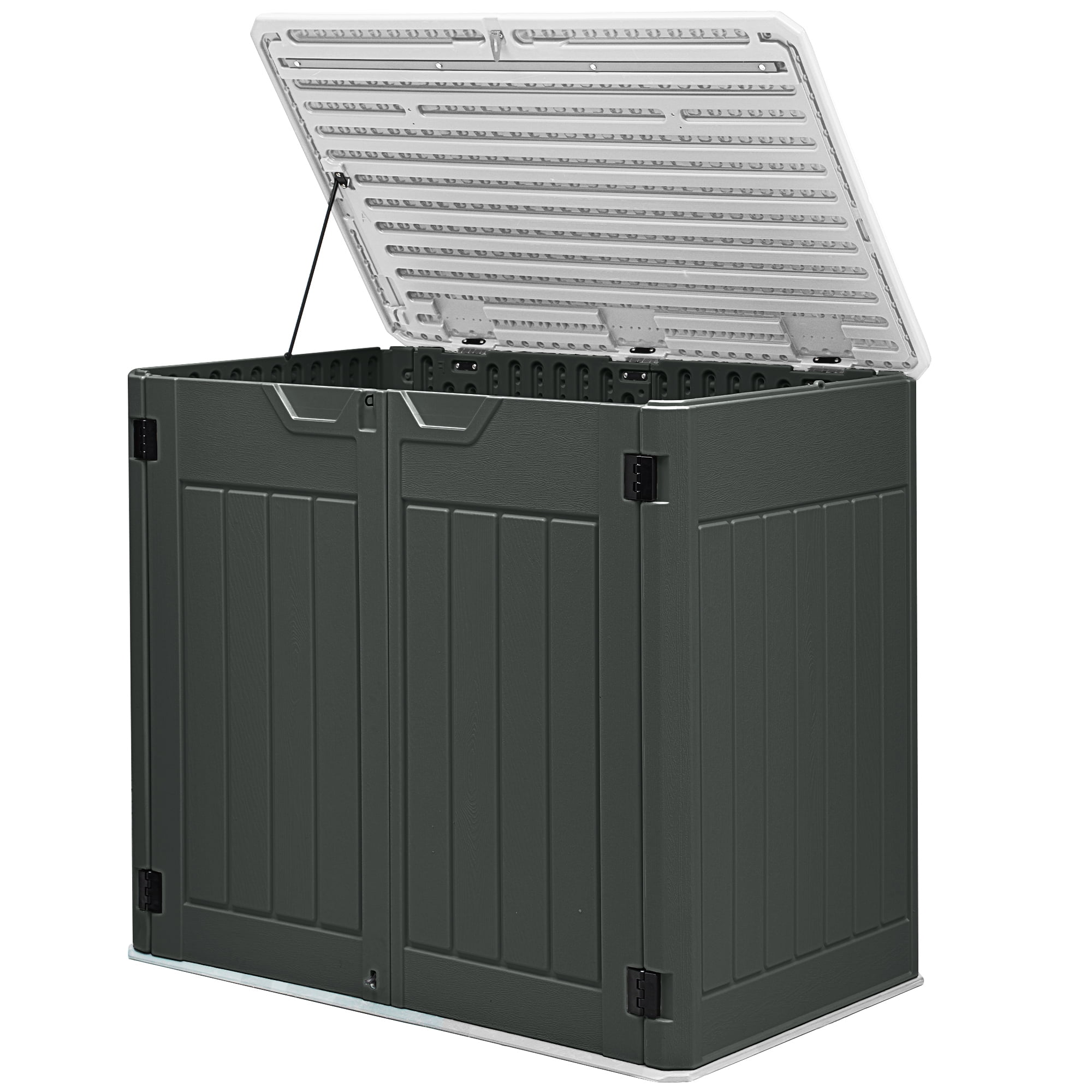 This 4.5x4ft Outdoor Horizontal Resin Storage Shed offers 39 cu ft of space, perfect for storing tools, bikes, lawn mowers, and more. Crafted from weather-resistant resin with a wood-like finish, it resists UV rays and harsh weather. The durable, double-wall design ensures strength and security, while easy assembly and a lockable lid provide convenience and peace of mind.