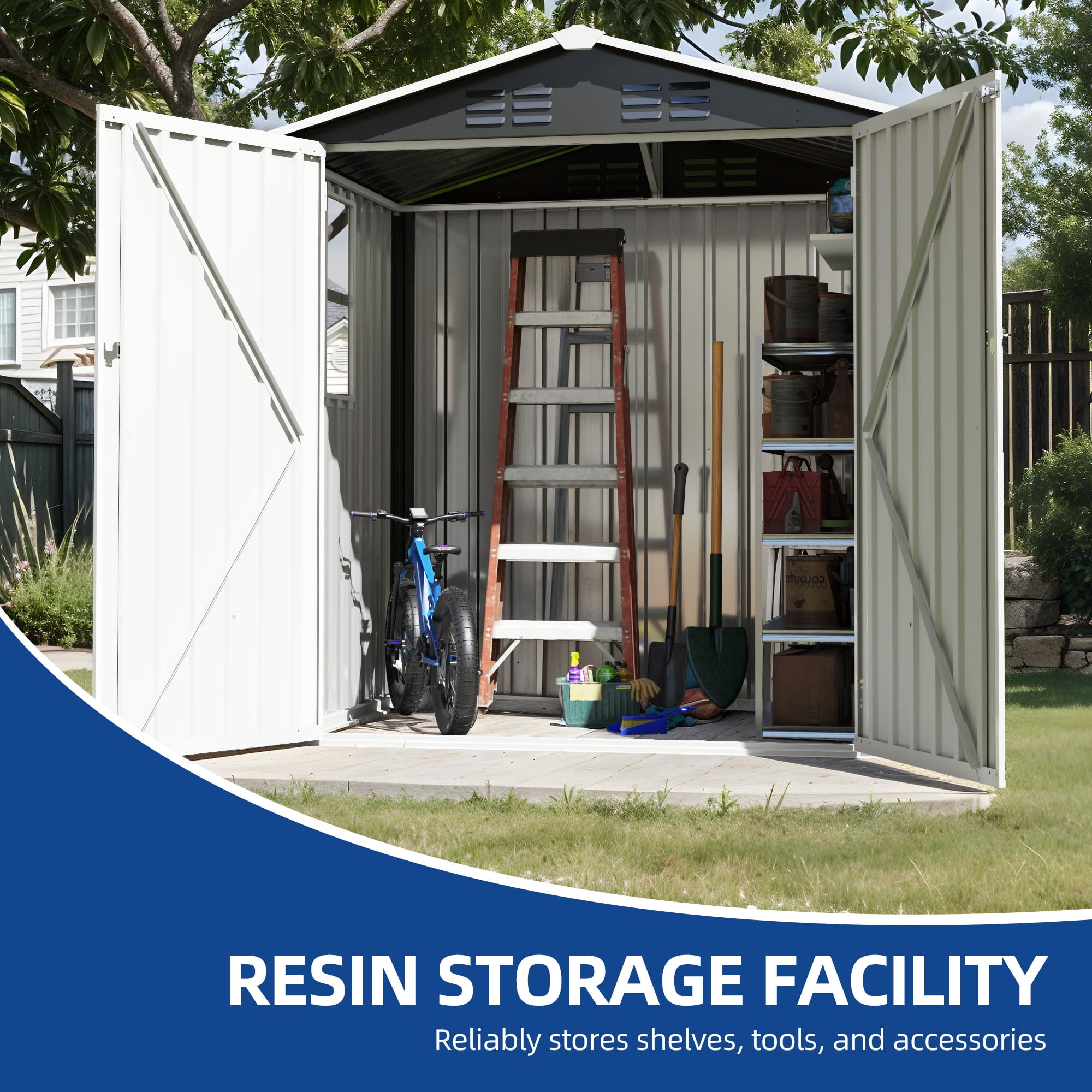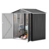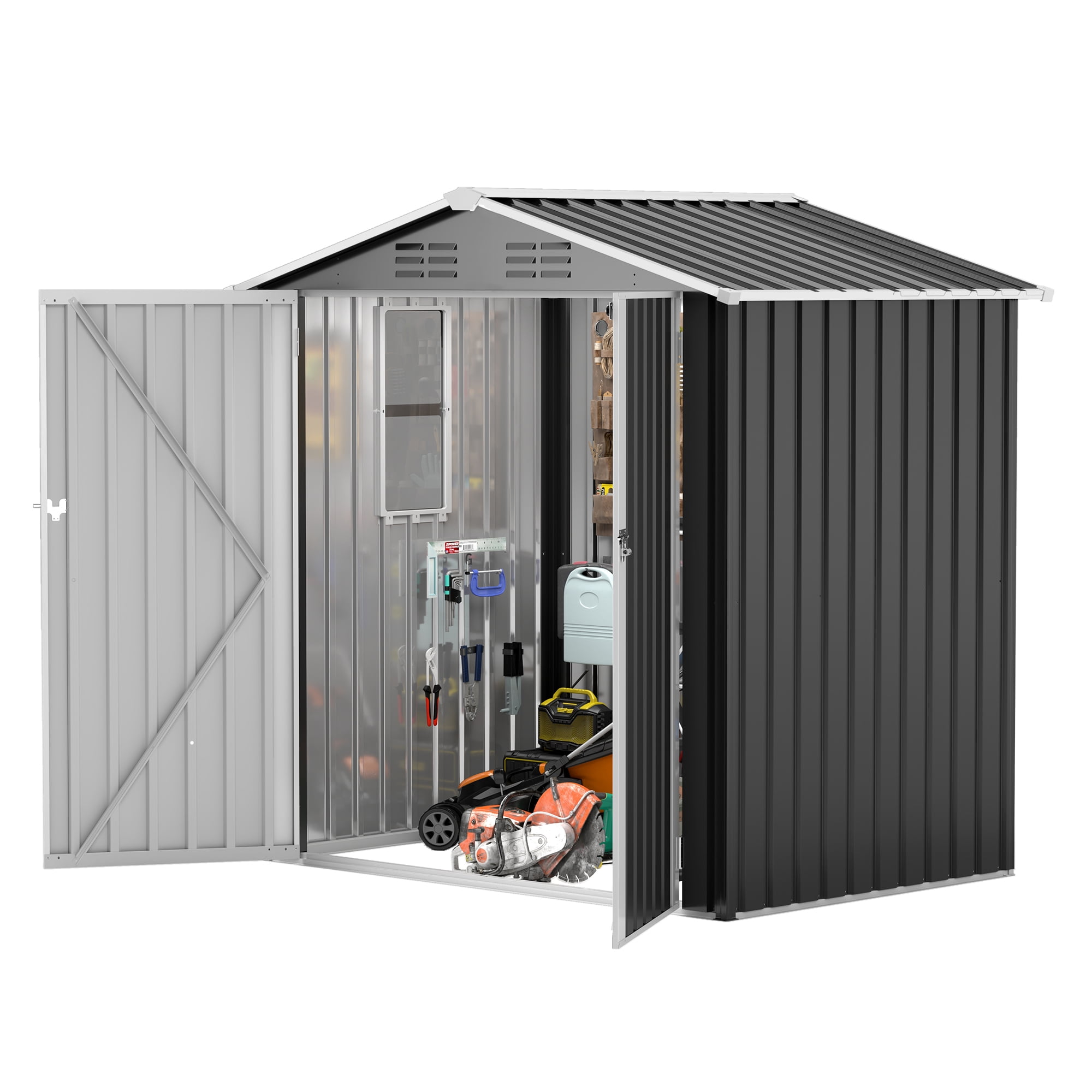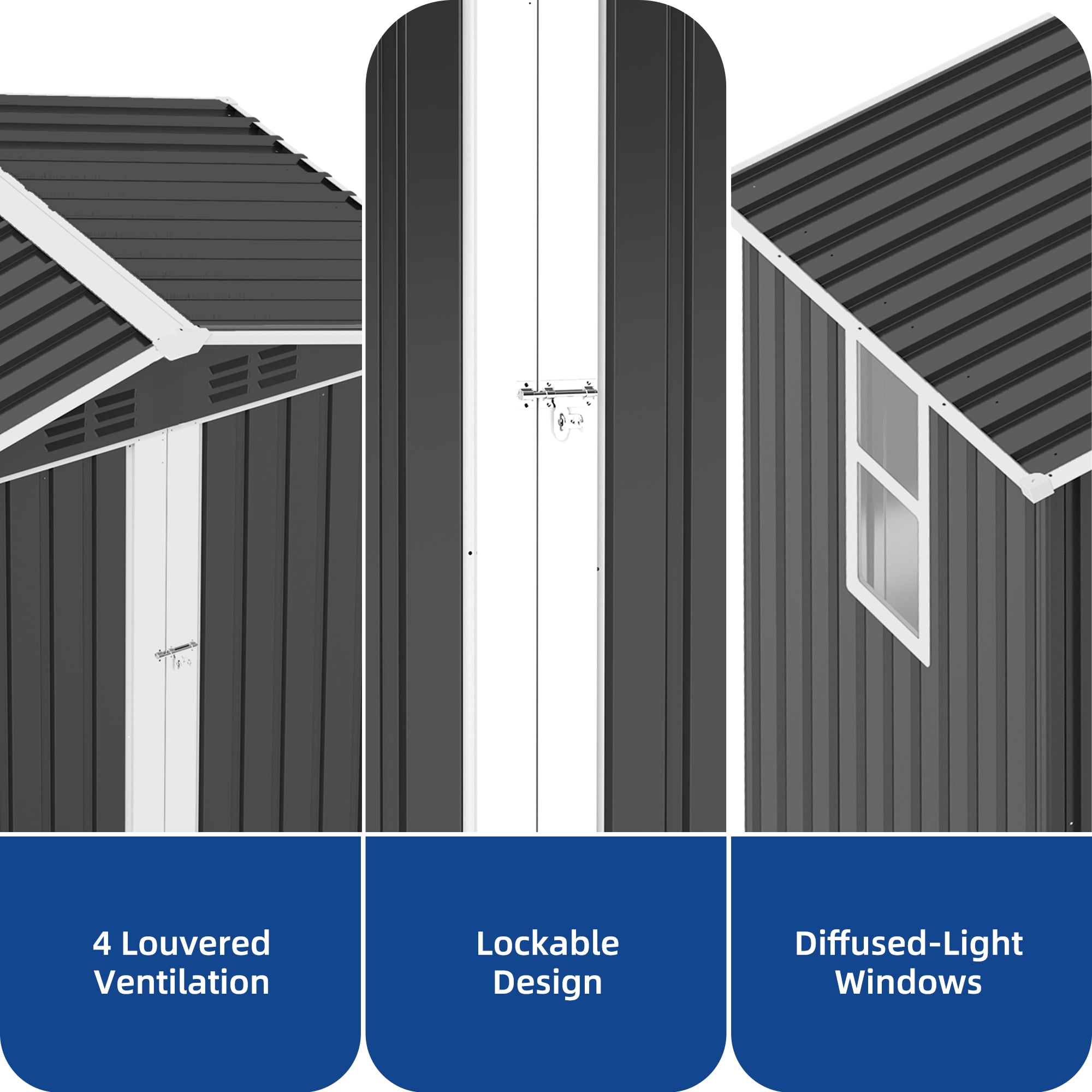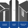 This tall outdoor shed is ready to handle your storage needs with ease. With plenty of height, it’s great for stacking tools, stashing garden gear, or keeping bulky items out of sight. The window brings in soft daylight so you can see what you’re doing, and built-in vents help keep things fresh inside. Lockable double doors keep everything secure, and the sloped roof handles rain like a pro. Plus, the dark grey finish gives it a clean, modern look that fits right in with any backyard setup.
