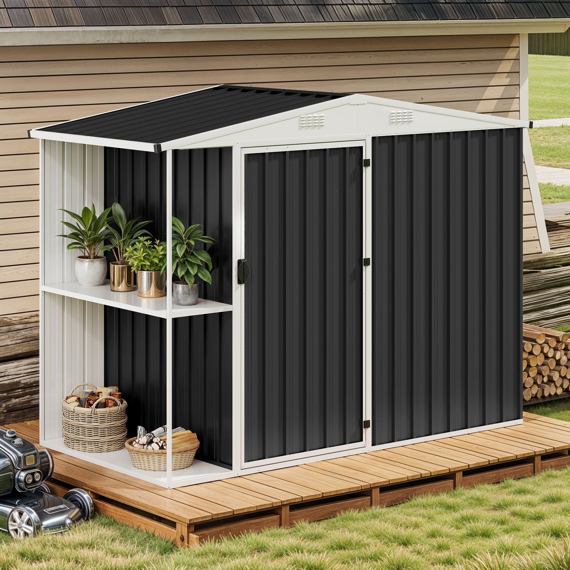 Uforic 8×4 FT Oversized Steel Storage Shed with Ventilation, Lockable Doors, and Sloped Roof for Outdoor, Dark Gray