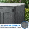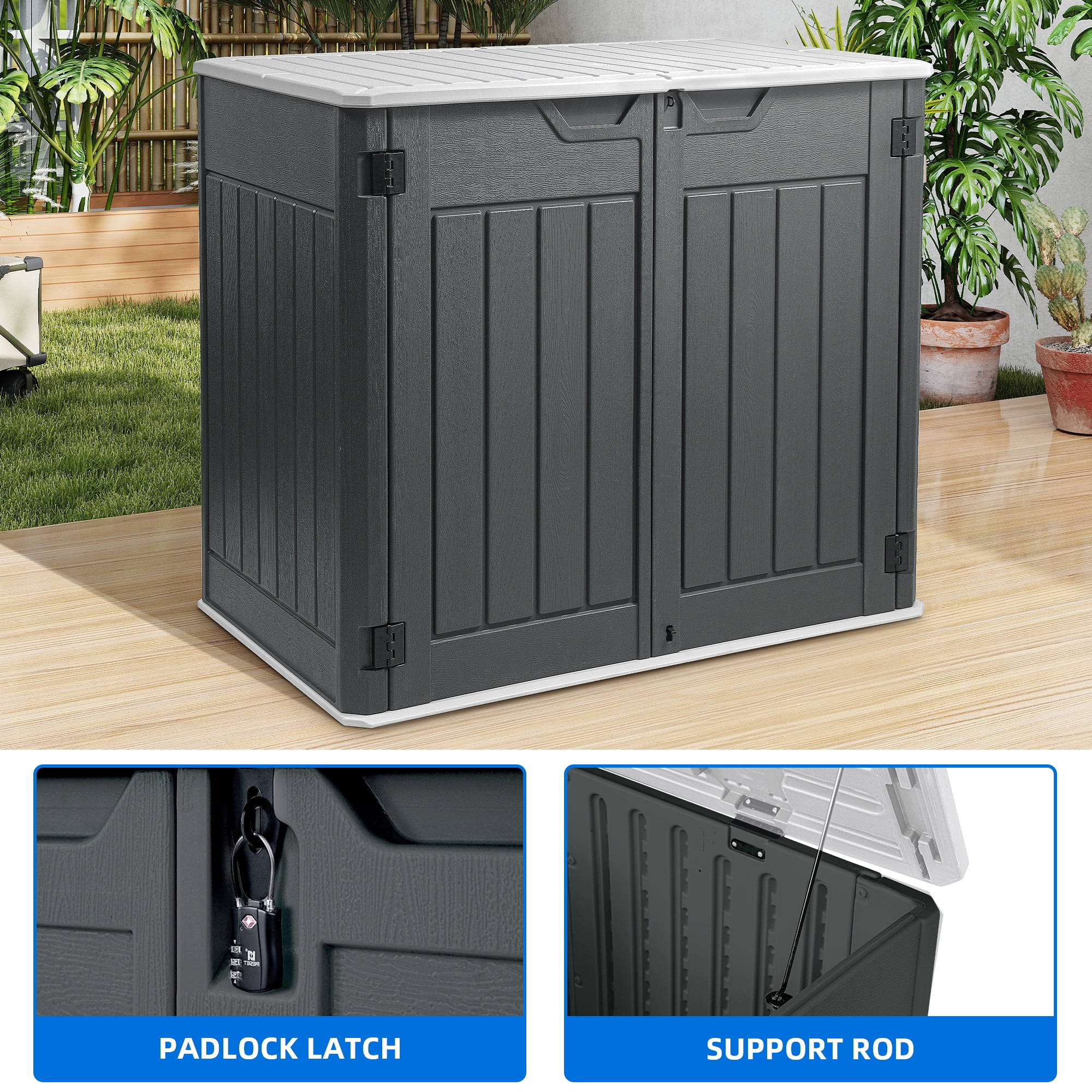 Maximize your outdoor space with this 47 cubic foot outdoor resin storage cabinet, ideal for organizing your garden, patio, or poolside essentials. Crafted from durable HDPE with a weatherproof faux wood finish, it stands strong against UV rays, rust, and impacts. Accessing your items is a breeze thanks to dual front doors and a lift-top lid with support rods, while the lockable design keeps everything safe and secure, truly a must-have for a tidy outdoor living area.