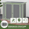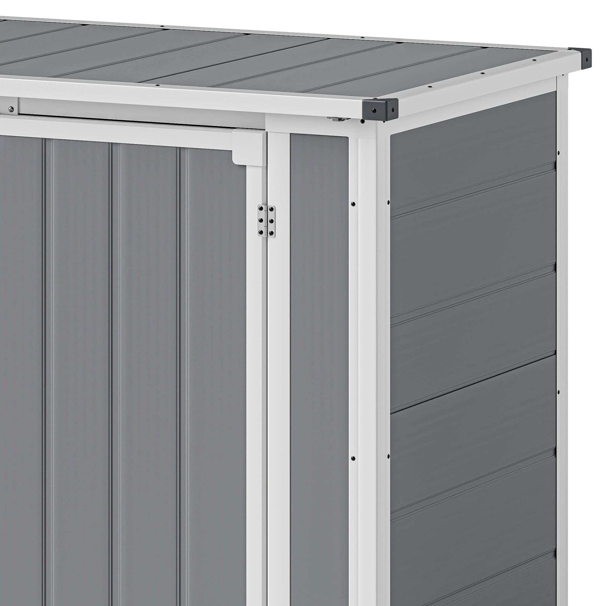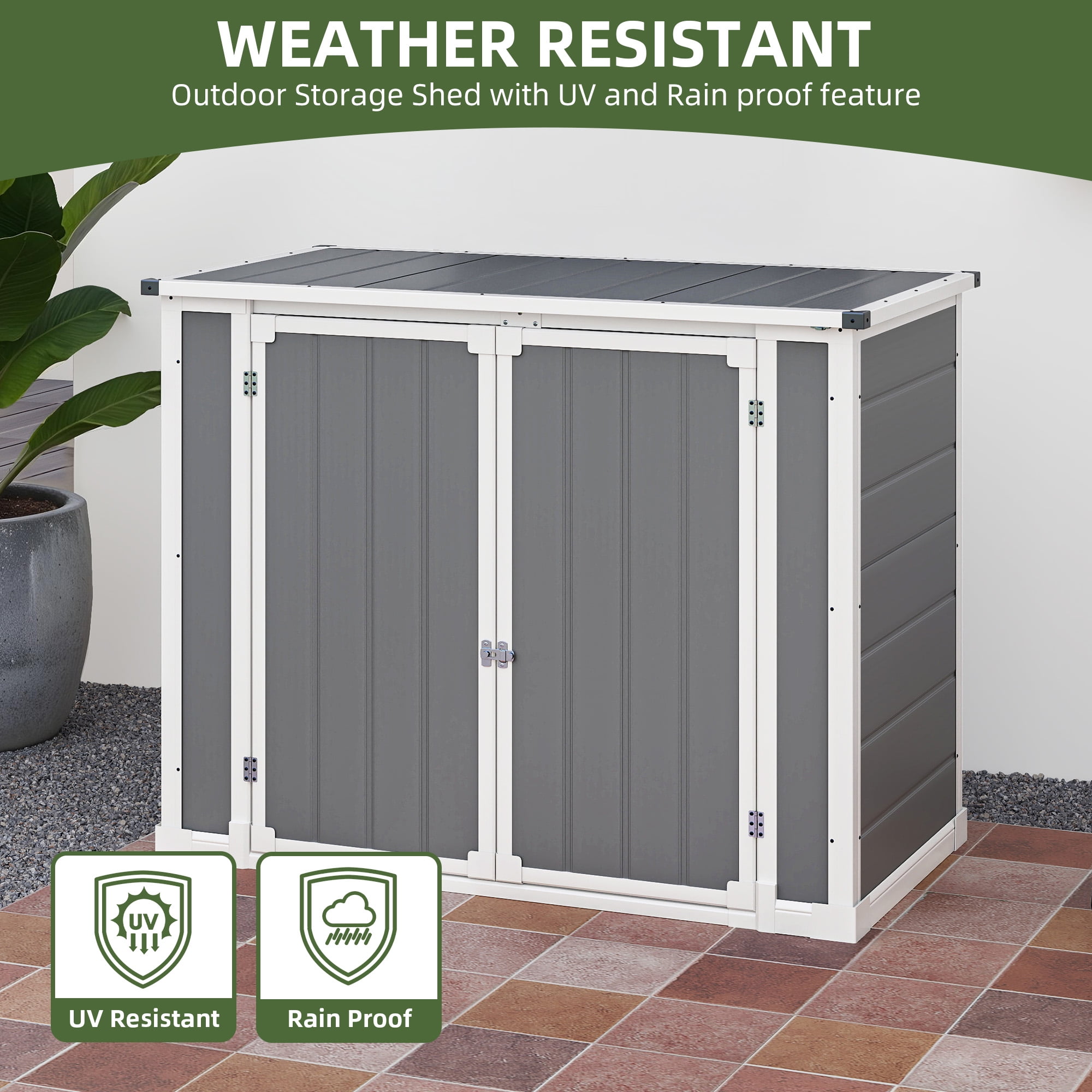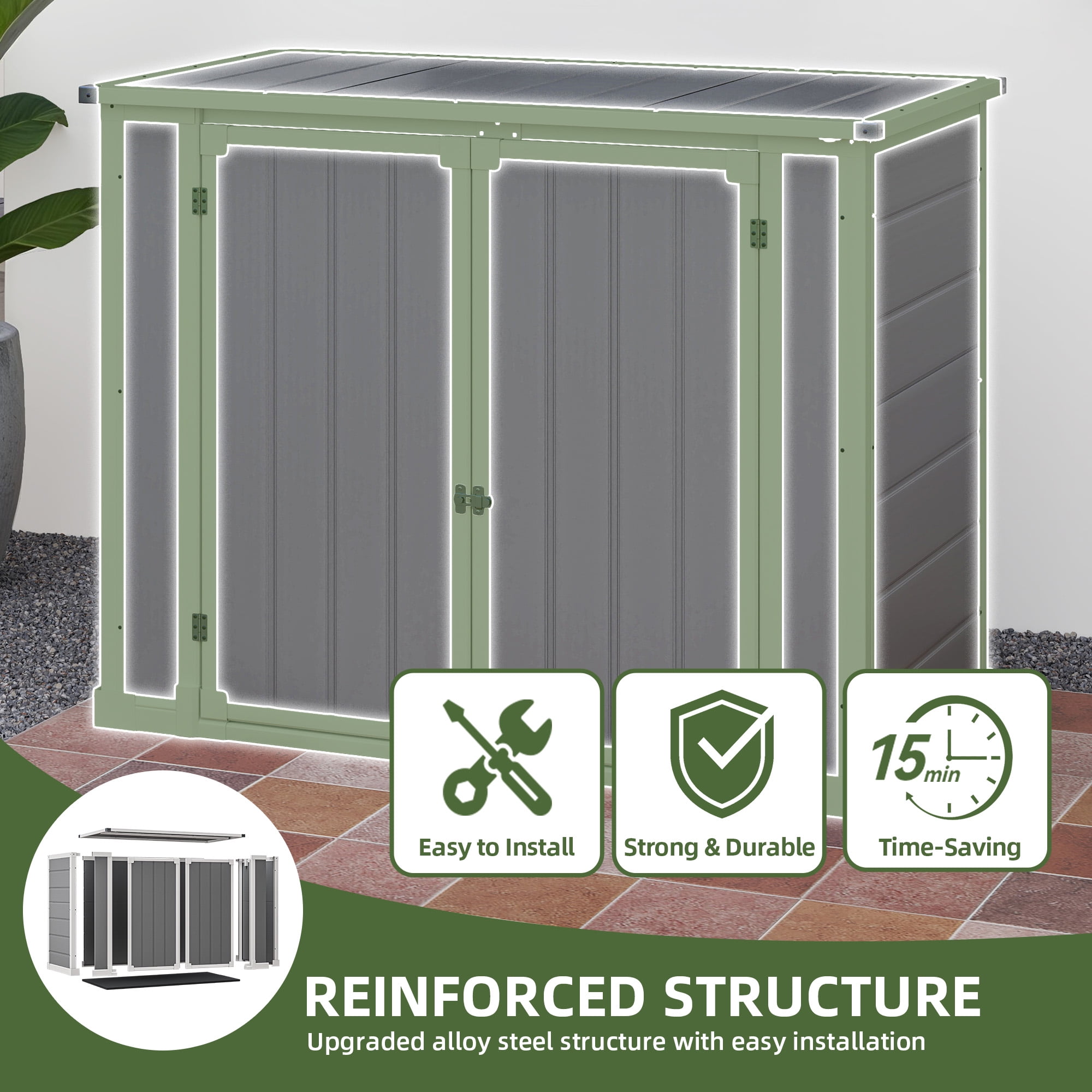 Keep your backyard tidy and organized with this no-fuss storage shed. Featuring both front and lift-up doors, it gives you quick, easy access to all your gear so you never have to dig or struggle to find what you need. Built from sturdy double-layer resin, it stands strong against wind, rain, and all kinds of weather. Plus, the lockable latch keeps your belongings safe and secure so you can relax knowing everything is protected. Simple, smart storage that just works.