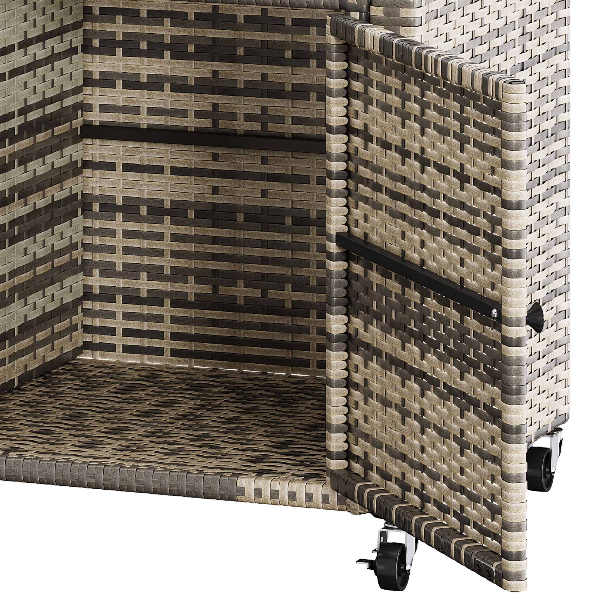 This XL outdoor storage cabinet Ideal for your patio, deck, or outdoor kitchen, The durable all-weather wicker handles sun, rain, and wind, With 56 gallons of open space and 70 gallons inside, there’s room for all your outdoor essentials. Glide it effortlessly on 360° wheels, lock it in place.From BBQ prep to drink stations, this cabinet does it all, and with super easy assembly.