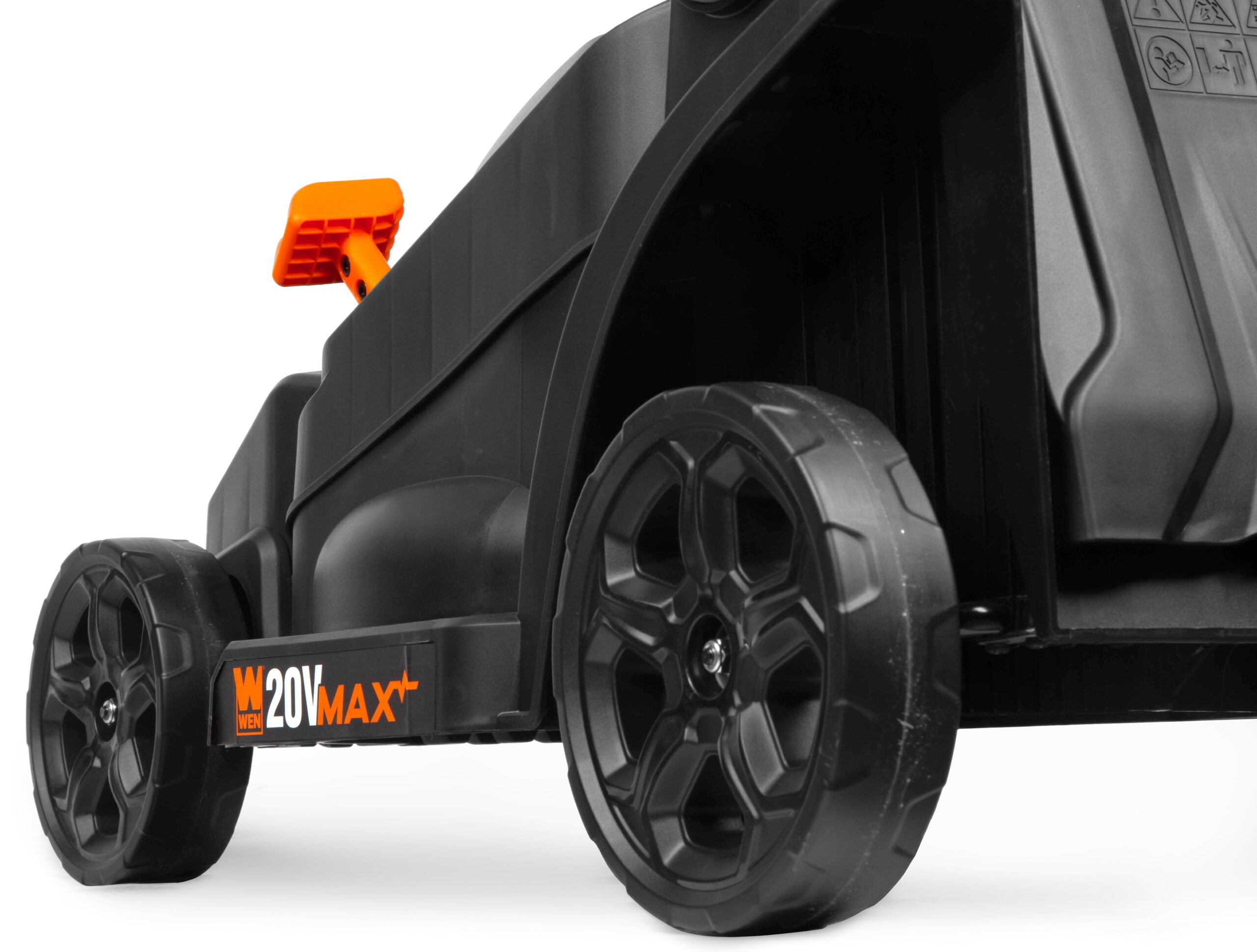Remember when you could mow your entire yard without using a single drop of fuel? Ditch the pull cord, gas, oil, and carbon emissions with the WEN 20V Max 15-Inch Brushless Lawn Mower. With a collapsible handle and a compact and lightweight design, storage and transportation have never been easier. The powerful brushless motor starts quickly and provides better performance, a longer lifespan, and less maintenance than brushed alternatives. The 13-inch blade rotates at up to 3300 RPM, making easy work out of even the thickest grass. Easily adjust the cutting height between five different stops ranging from 1.0 to 2.6 inches. The 6.3-inch rear wheels help the mower glide over tough and bumpy terrain with ease. The included fade-free 5Ah lithium-ion battery and charger also work with the entire WEN 20V Max Series to make your yard work easier than ever. And because it’s a WEN product, your mower comes backed by a two-year warranty, a nationwide network of skilled service technicians and a friendly customer help line. Remember when your yard was the talk of the town? Remember WEN.