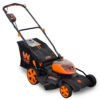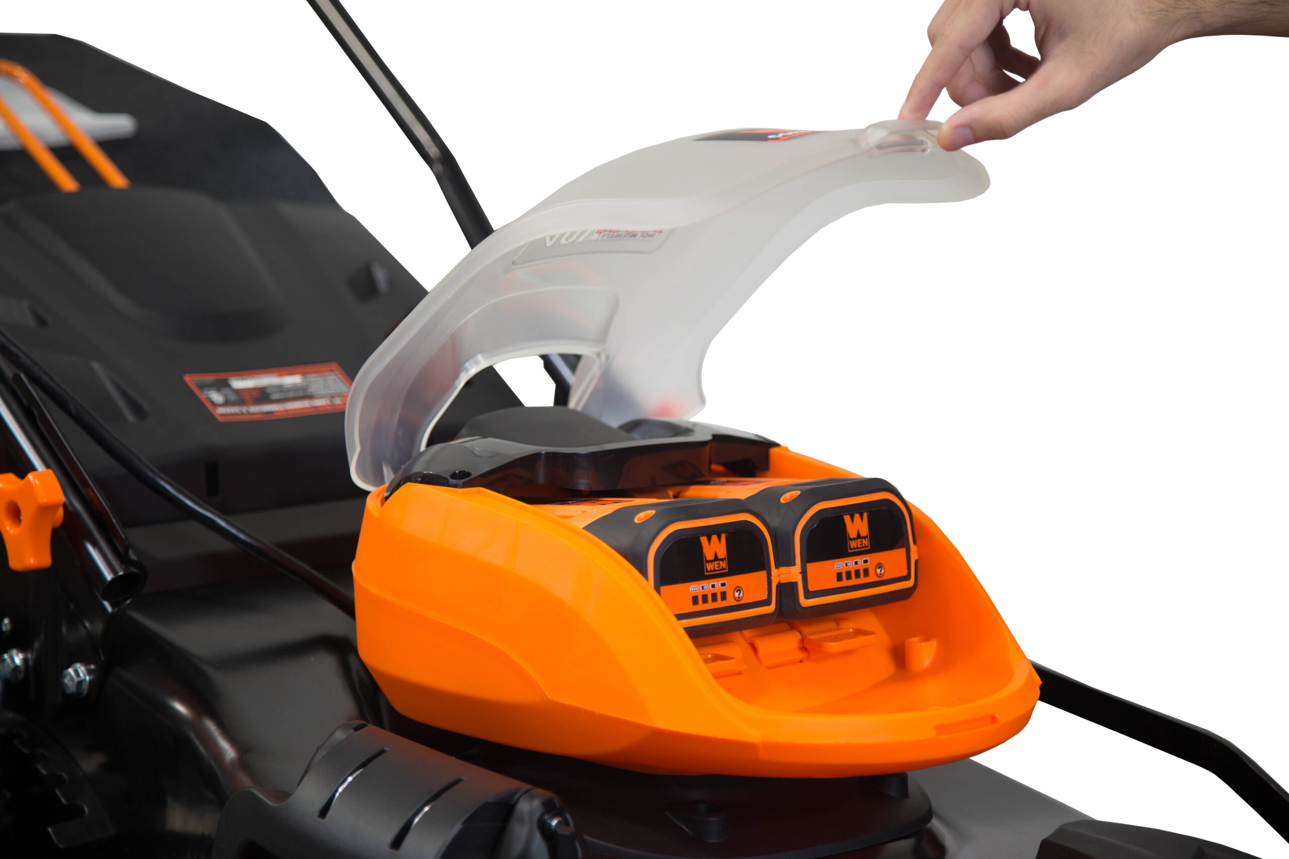 Remember when you could mow your entire yard without using a single drop of fuel? Ditch the pull cords, the gasoline, the oil and the carbon emissions with the WEN 40V Max Lithium Ion 19-Inch Cordless 3-in-1 Lawn Mower. With three different modes of operation, you’ll have the option to mulch, bag or use the side discharge chute depending on the needs of your particular yard. Our dual-port battery dock accepts two batteries at a time, automatically switching between the two when one battery runs out. With a collapsible handle and a compact and lightweight design, storage and transportation have never been easier. Electric start means the mower powers up quickly without the need of any additional off-season maintenance. The 40V batteries rotate the 17.7-inch blade up to 2850 RPM, making easy work out of even the thickest of grass. Easily adjust the cutting height between six different stops ranging from 1.5 to 4 inches. The onboard battery indicator will keep you up to speed on the remaining battery life while the 10-inch rear wheels glide over tough and bumpy terrain with ease. Our intelligent motor automatically adjusts its torque depending on the grass’ thickness, allowing users to both save battery life and maximize the lifespan of their machine. The included batteries and charger can also power the entire WEN 40V Max Lithium-Ion Series, including the WEN 40410 40V Leaf Blower, the WEN 40413 40V String Trimmer, the WEN 40415 40V Hedge Trimmer and the WEN 40417 40V Chainsaw. And because its a WEN product, your mower comes backed by a two-year warranty, a nationwide network of skilled service technicians and a friendly customer help line. Remember when your yard was the talk of the town? Remember WEN.