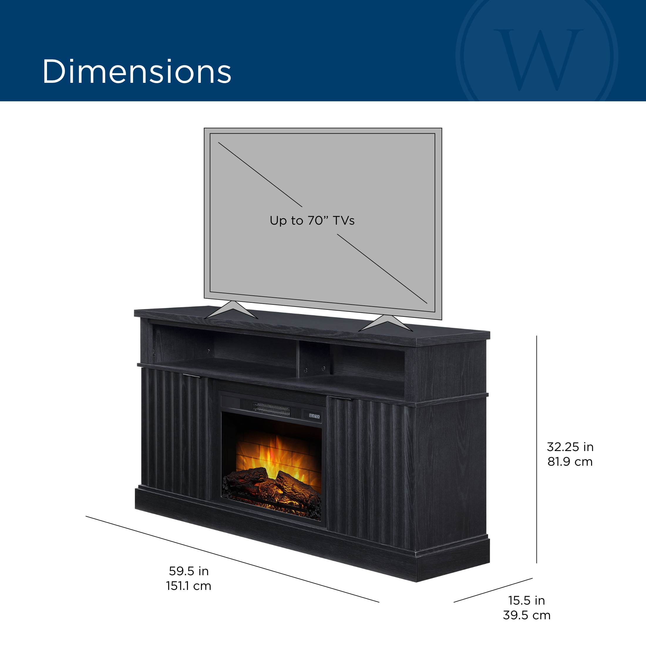 Whalen Furniture Harris Fluted Media Fireplace Console for TVs up to 70”, Black Finish